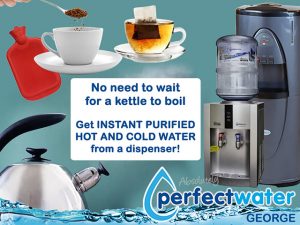 Buy or rent your water dispenser from Perfect Water George and enjoy the comfort of instant purified hot or cold water on tap at any time! Water dispensers are great for home and office use, even at schools and clubs.
