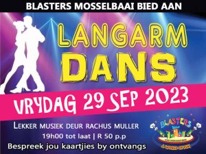 Kom geniet ‘n gesellige langarm dans op 29 September 2023 by Blasters Centre Mosselbaai! Rachus Muller sorg oudergewoonte vir lekker musiek. Bring die kinder...