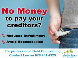No Money to Pay Your Creditors? Garden Route Debt Counsellors Do you have no money to pay your creditors each month? Are you falling further...