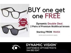 Hartenbos Optometrist Dynamic Double Deal Hartenbos Optometrist at the Spar Centre Hartenbos offers a Dynamic Double Deal on premium multifocal lenses. Buy one pair of...