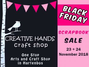 Black Friday Scrapbooking Sale Hartenbos Creative Hands Craft Shop in Hartenbos will be having a Black Friday Sale on a selection of scrapbooking cardstock, paper...