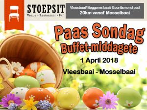 Paas Sondag Buffet-middagete Vleesbaai Mosselbaai Vleesbaai Sondag Buffet-middagete Mosselbaai Bederf jou familie hierdie Paas Sondag, 1 April 2018, met ‘n heerlike 4-gang Sondag Buffet-middagete by...
