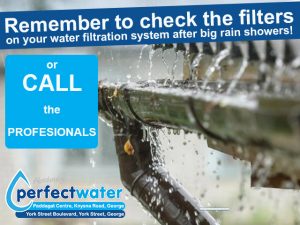 Water Filtration System Filters in George Remember to check the filters on your water filtration system after big rain showers! Rain water can be safely...