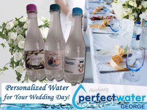 Let Absolutely Perfect Water George, a supplier of personalized water, take care of the water for your wedding day! Your design will be placed on our water bottles to give that extra personal touch to your big day. Contact one of the Absolutely Perfect Water shops in George to discuss your own personalized bottled water.