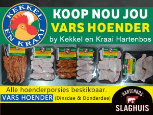 Die varste, smaaklikste hoender is beskikbaar by Kekkel en Kraai Hartenbos elke Dinsdag en Donderdag! Indien jy nie geweet het nie, Kekkel en Kraai Hartenbos is geleë in jou plaaslike slaghuis, Hartenbos Slaghuis.